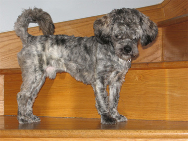 We found him at the Anti-Cruelty Society. The paperwork said he was a 2 year old Shih Tzu - Poodle mix (though we always thought he was probably Schnauzer - Poodle). They had also said he did not bark (he did) and that he was house-broken (mostly, he was). He really did a lot to bring Harley out of his shell. The three of them used to play all the time. We only had a birth year - 2005. He was adopted by us on Dec. 10, 2007 and left this world on Sept. 17, 2024 - 19 years old. |