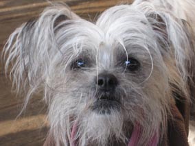 -We found her at a pet store in Merrillville, IN. She is a mixed bree Chinese Crested and Lhaso Apso. Her face was really monkey-like and so her name. She was born on Feb. 2, 2011 and we adopted her on April 3, 2011. Jef kept waiting for her to lose her teeth (as the breed tends to do) and her toungue would then hang out. She was a holy terror and became the alpha of the pack. She passed away too early - June 4, 2022 at 11 years of age. |