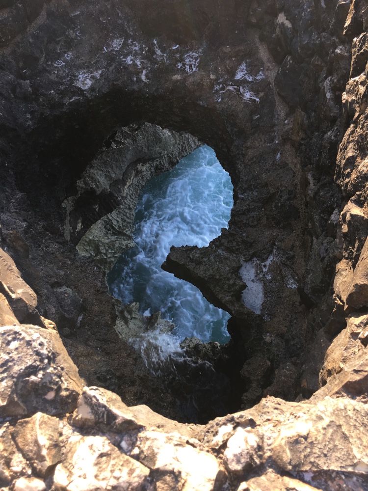 | IN THE BACK GARDEN... HOLES THAT OPEN TO THE OCEAN (and I think, my first selfie) |