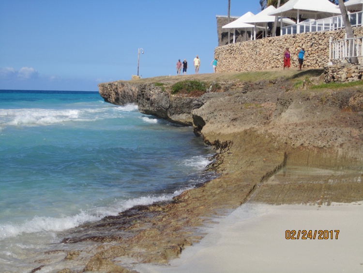 | THE BEACH - CLIFF TO ONE SIDE, WHITE SAND ON THE OTHER |