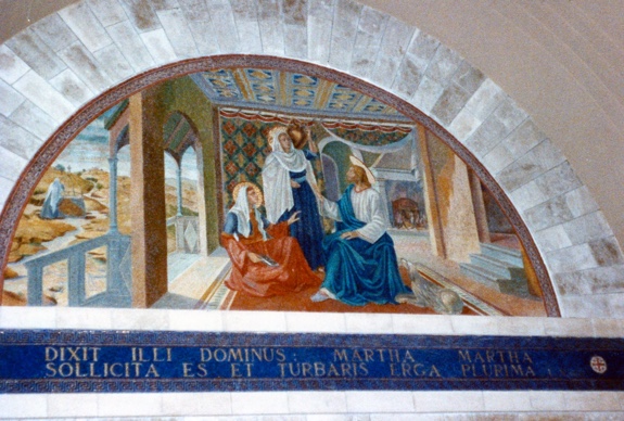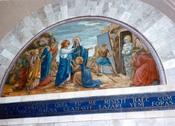 Bethany - Altar & mosaics commemorating Christ's events there: Martha & Mary; raising Lazarus; anointing by the sinner woman