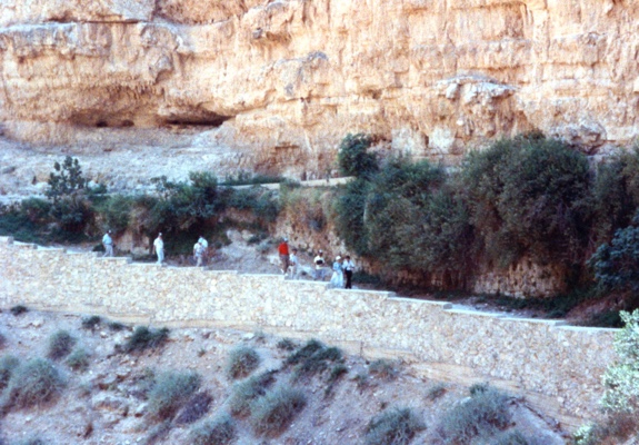 Wadi Kelt - heading to St. George's Monastary. Note the hermit caves in the mountainside